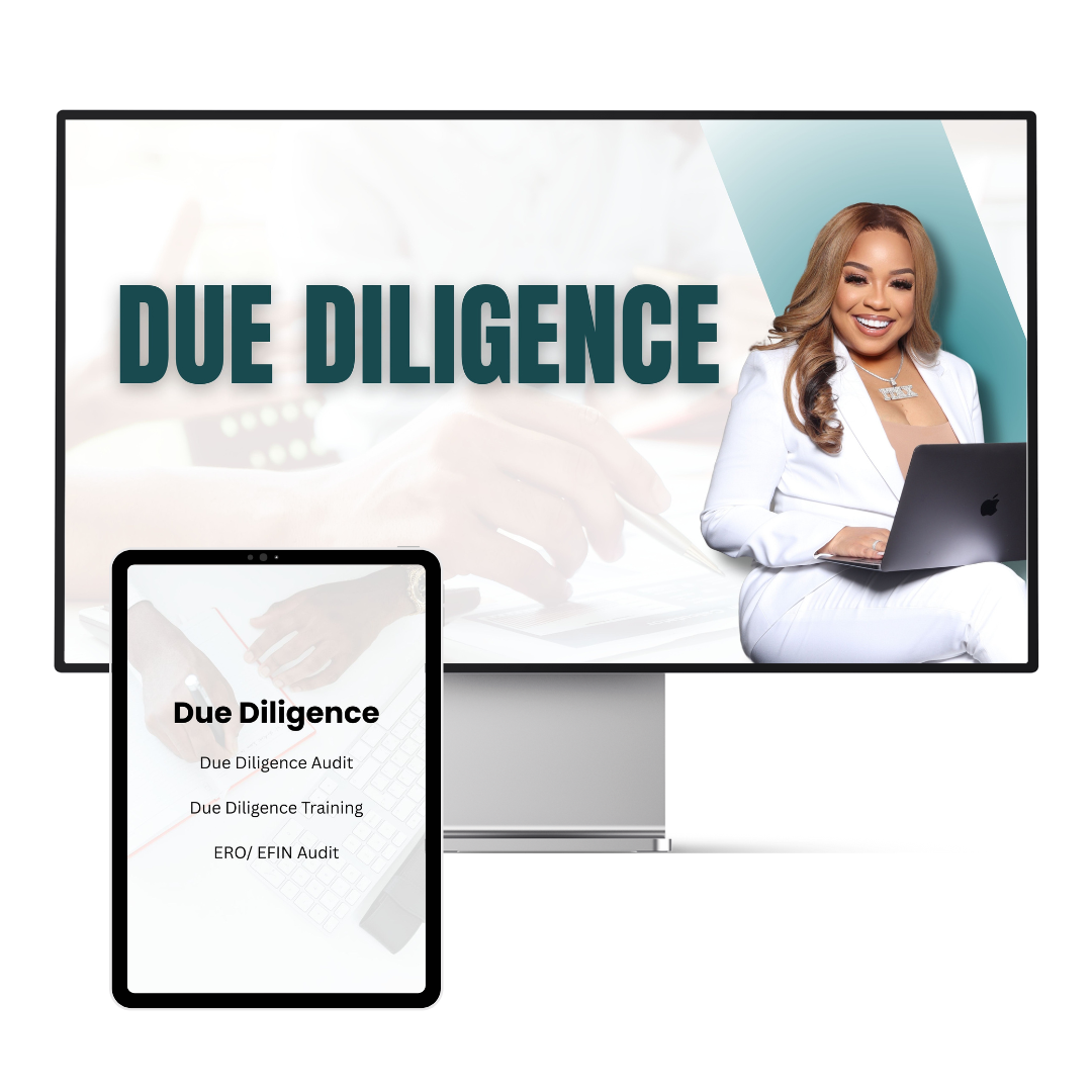 We offer comprehensive Due Diligence services for tax professionals, including audits to ensure compliance with IRS regulations, staff training on proper documentation practices, and EFIN/ERO audits focused on ethical standards and professional responsibility.